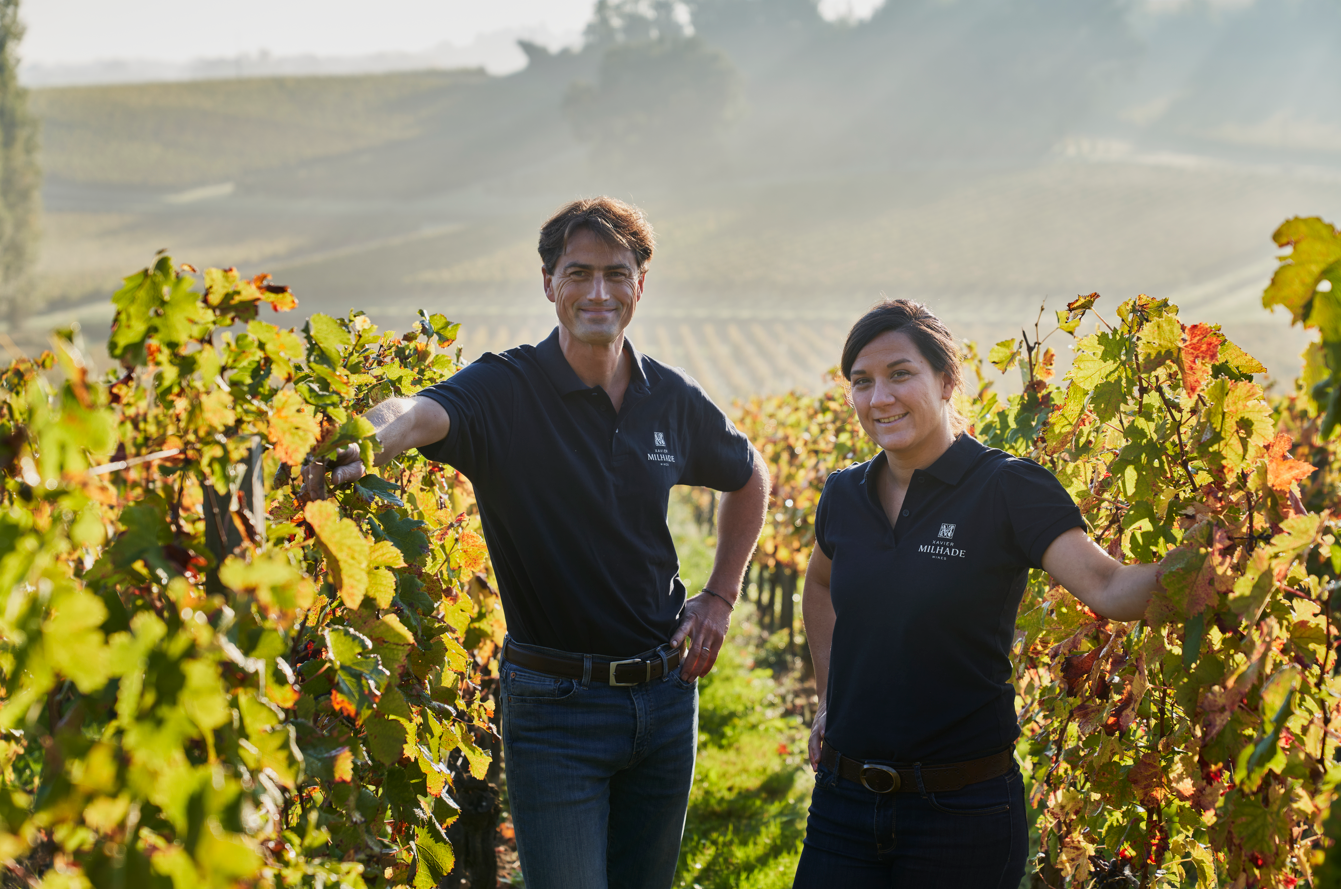 The new generation represented by Xavier and Agnès’ children, Marc and Elodie, have carried on the work and now run all the production and sales aspects of the family estates and the wine trading business. Marc joined his father in 2005 after studying as an engineer and became mainly involved in the production and vineyard activities. Elodie joined them in 2010 after completing her business studies to consolidate the sale of the family estates wines and of a selection of partner wines and Bordeaux Crus Classés through the company known as “Samazeuilh et Cie”.